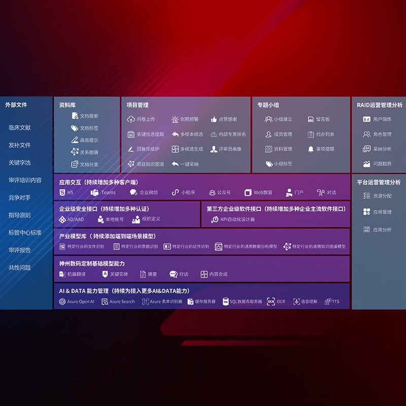 医疗器械产品上市前,,,,要熟悉严格与繁复评审标准,,整理分析监管机构指导文件中的海量信息。。。。企业急需一个智能化解决方案,,,提升知识管理效率,,提高评审通过率,,,以提升其市场竞争力。。。